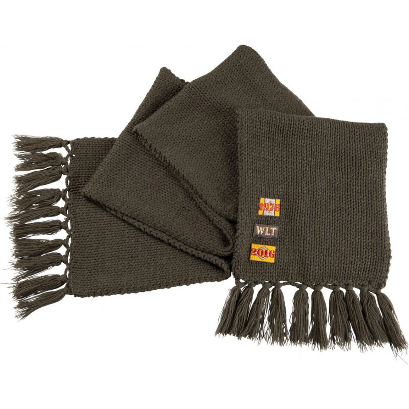Écharpe en grosses mailles acrylique avec franges aux extrémités et badges d’un côté. Assortie au bonnet réf. 985 031 004. Lavable en machine à 30°C.