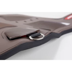 Sangle en TPU (plastique solide et flexible), confortable et anatomique- Boucles inox avec ardillon sur ressort, ce qui facilite le sanglage une fois en selle- Néoprène perforé et nombreuses prises d’air pour une ventilation optimale- Inserts en carbone pour une protection supplémentaire- Mousqueton en aluminium dissimulé dans une poche de protection