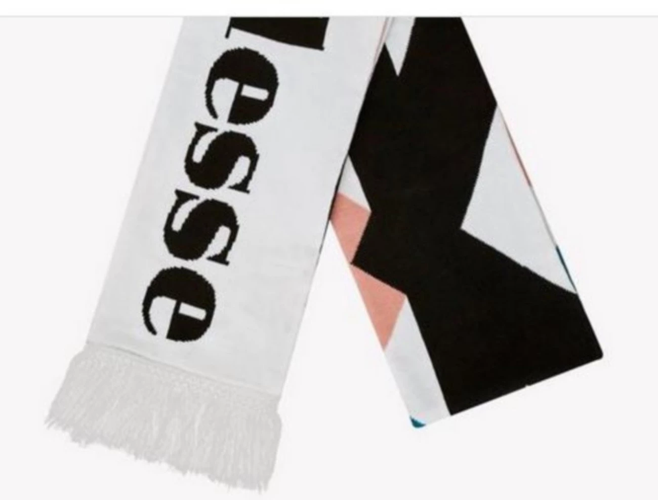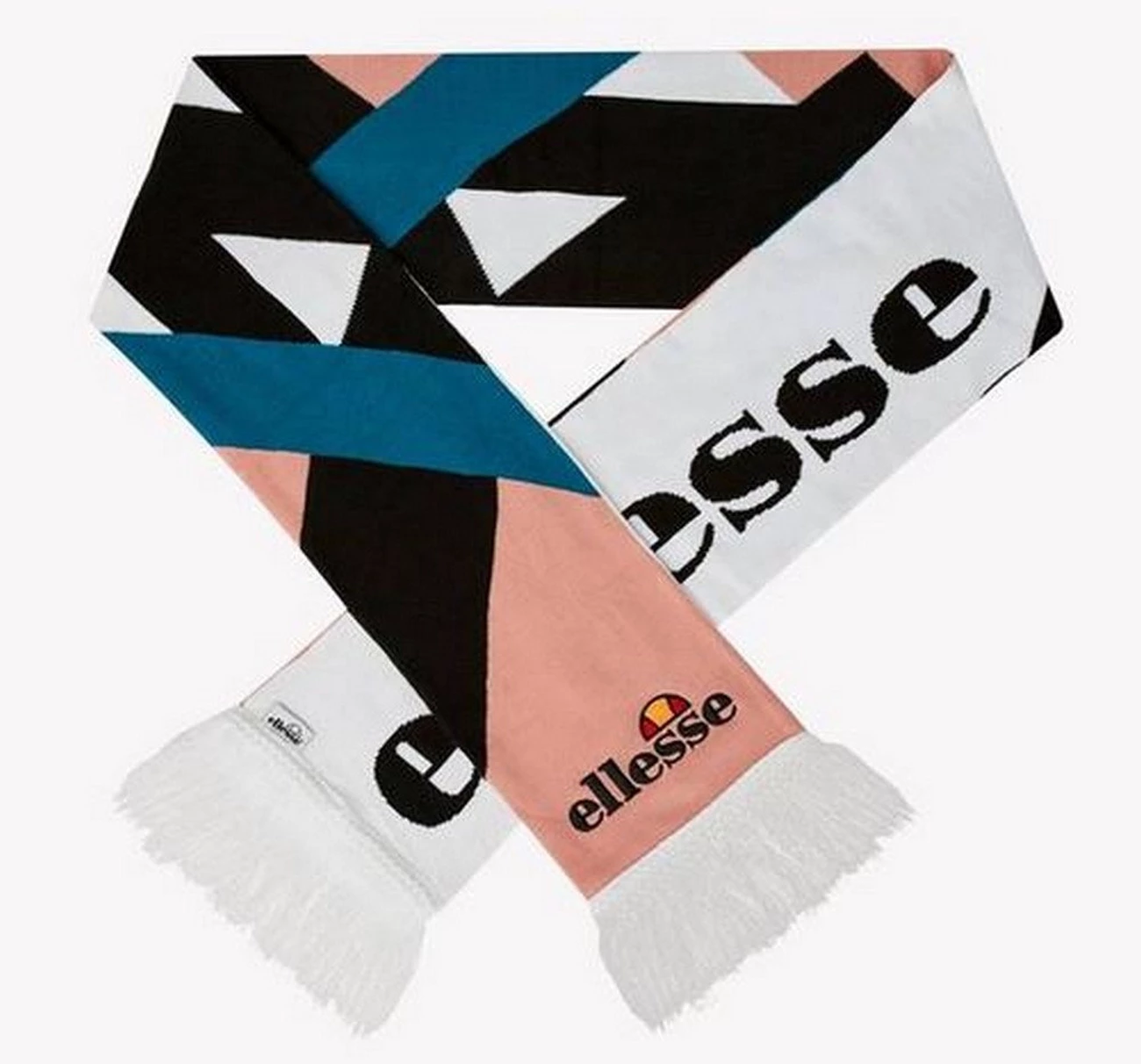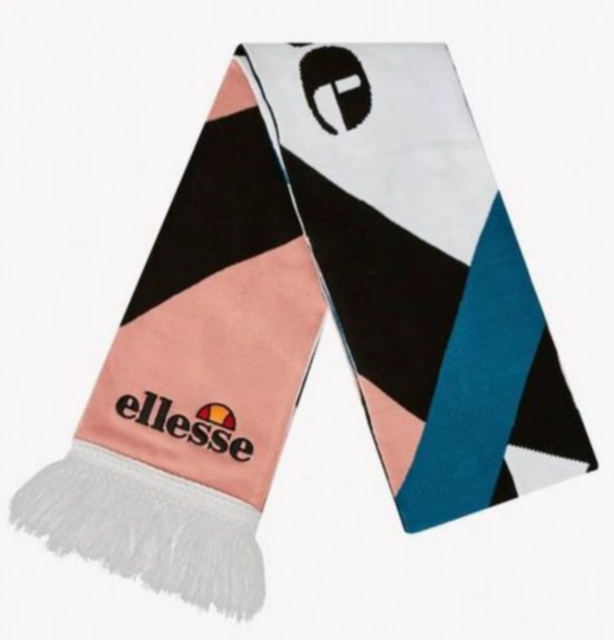 Echarpe ellesse noir rose bleue et blanches à franges, modèle à franges, logos ellesse sur la longueur et la largeur, très agréable à porter, franges environ 20 cm, produit garantie sans contrefacon expédié de france, dimensions : 200 x 21cm (hors franges), 95% acrylique, 5% spondex, lavage main à froid uniquement.